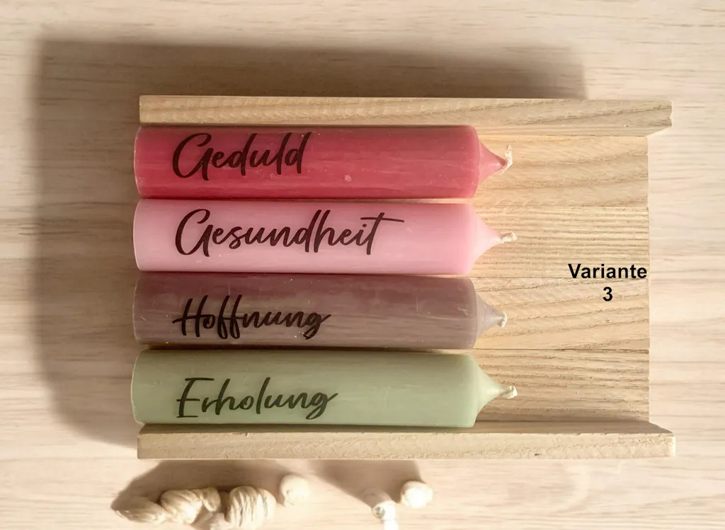 Zaubere Sprüche und Motive auf unterschiedlichste Materialien, wie Kerzen, Tassen, Keramik, Porzellan, Glas, Kunstoff. Ideal geeignet als Deko oder Geschenkidee für Hochzeiten, Geburtstage, etc.